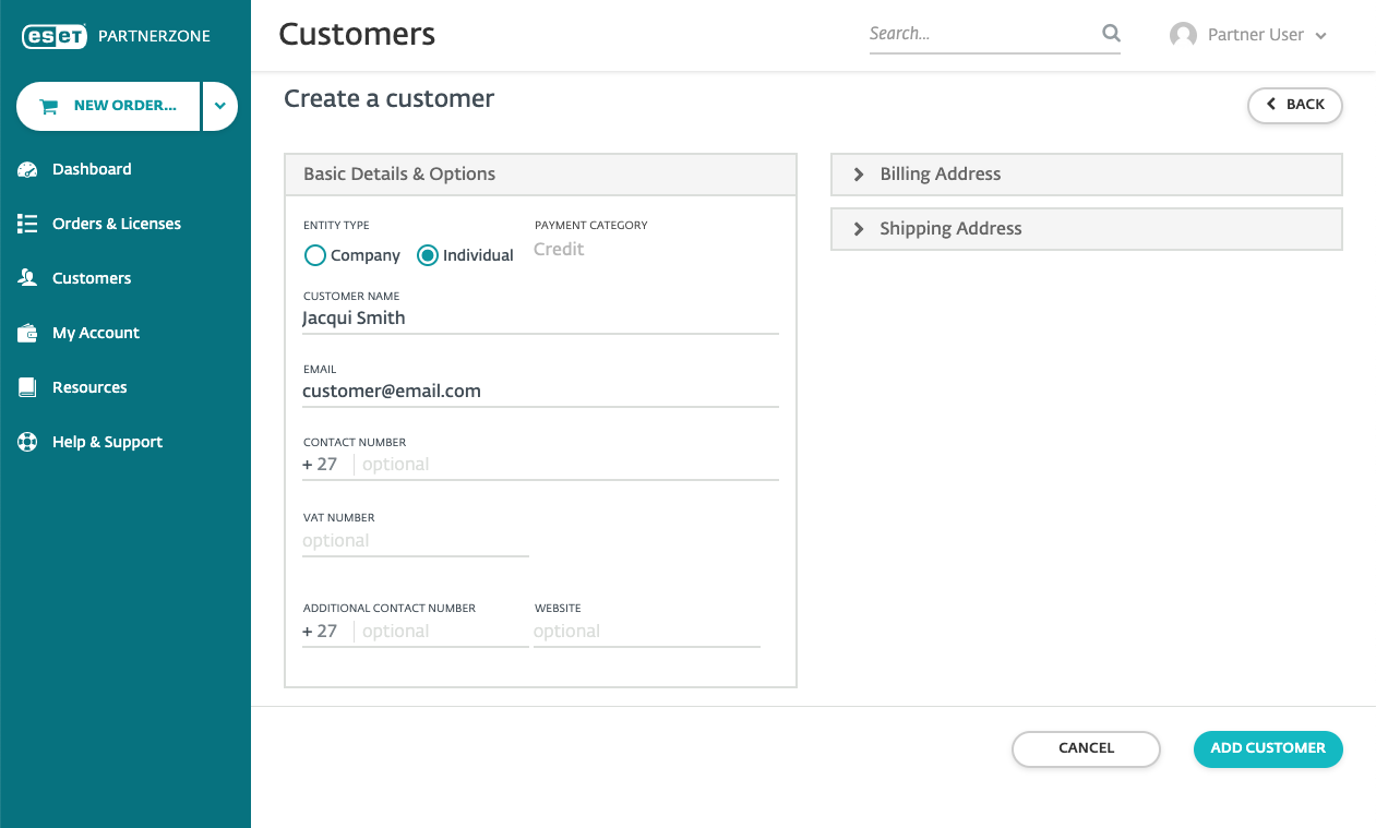 Click on New Order... (near the top left) Choose a Customer If you have already added the Customer to your PartnerZone account, you can search for it using Customer Name, Email, or Customer ID If you have not yet added the Customer, click on Create ...